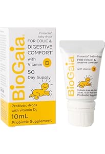 Probiotics for Babies Biogaia Probiotic Supplements Probiotics for Babies BioGaia Protectis Baby Newborns Ease colic spit-ups and occasional constipation diarrhea Non-GMO. Five 5 drops once daily. Can either be given by spoon or massaged into babys gums.